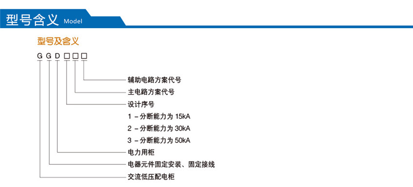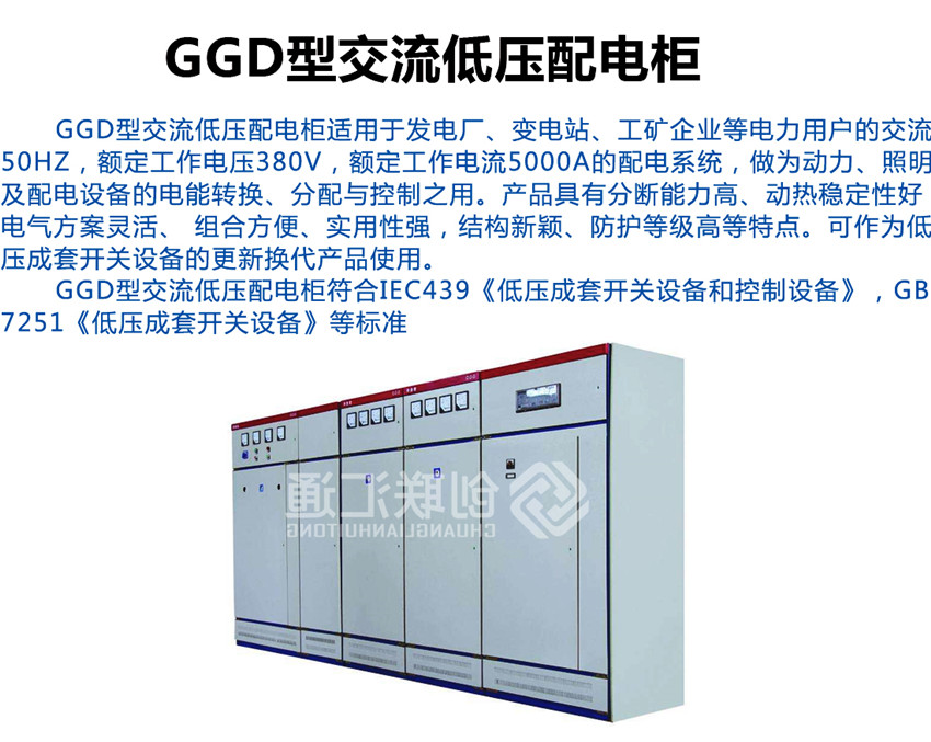 GGD型交流低壓配電柜是根據能源部主管上級,廣大電力用戶及設計部門的要求,本著安全、經濟、合理、可靠的原則設計的新型配電柜。產品具有分斷能力高,動熱穩定性好,電氣方案靈活、組合方便,系列性、實用性強,結構新穎、防護等級高等特點,可以作低壓成套開關設備的更新換代產品使用。并且廣泛適用于發電廠、變電所、工業企業等電力用戶作為交流50HZ,額定工作電壓380V,額定電流至3150A 的配電系統中作為動力,照明及配電設備的電能轉換、分配與控制之用。該產品分斷能力高,額定短結構新穎等特點。該產品是我組裝式、固定面板開關柜的代表產品之一。