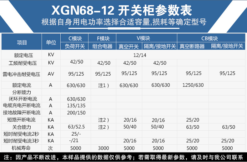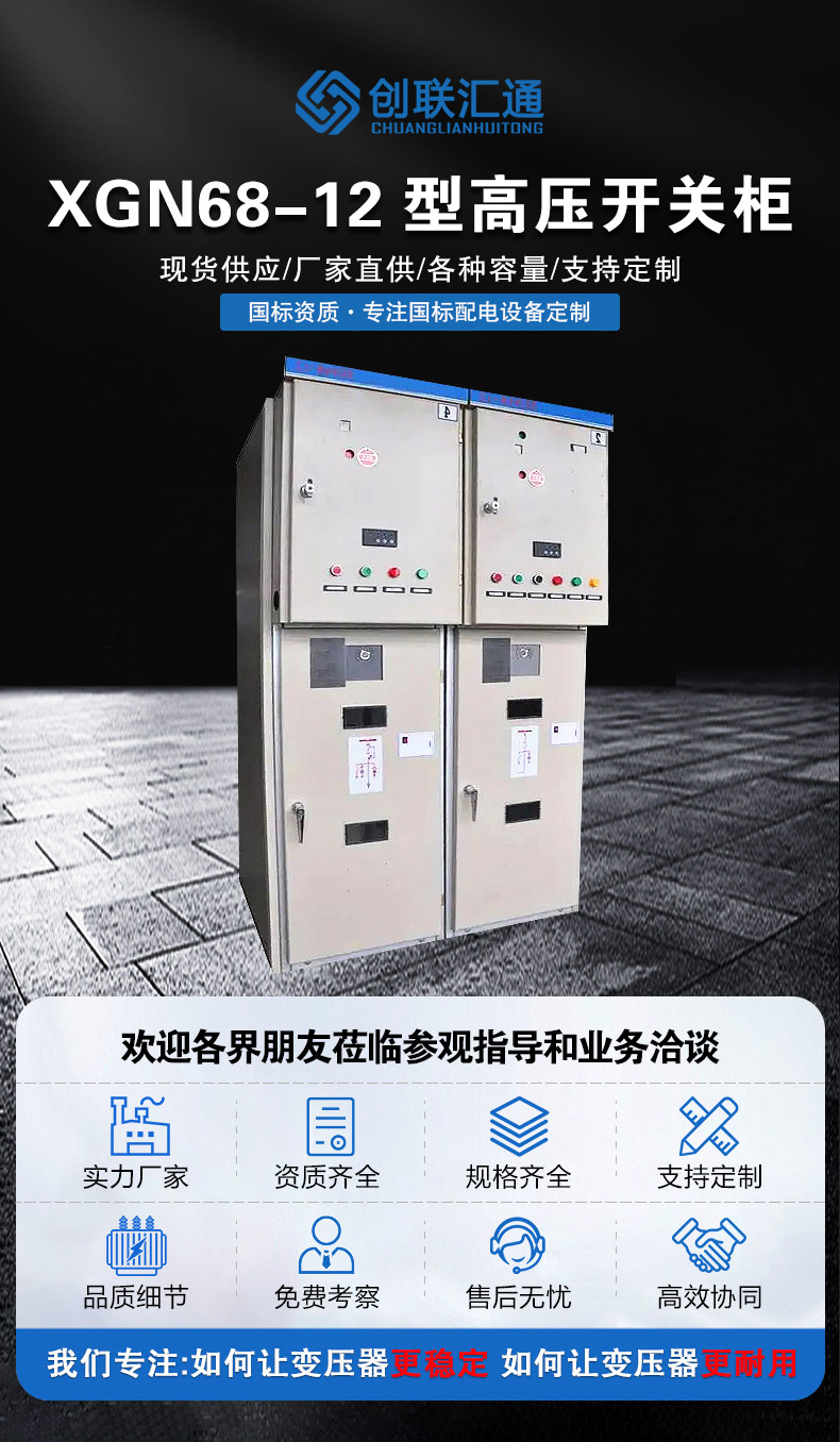 XGN68-12型高壓真空開關柜,系三相交流額定電壓12kV、頻率為50Hz的戶內供、配電設備,用于環網供電或雙電源輻射供電系統中,作為電能的控制和保護裝置,亦可裝入箱式變電站中。該設備主回路所選用的主要元件為專門為該開關柜開發的ZN100-12型真空斷路器、FZN-12型真空負荷開關、FZNR-12型負荷開關-熔斷器組合電器等。該產品以其可靠的性能、簡單的操作、小巧的外觀深受廣大用戶的歡迎。