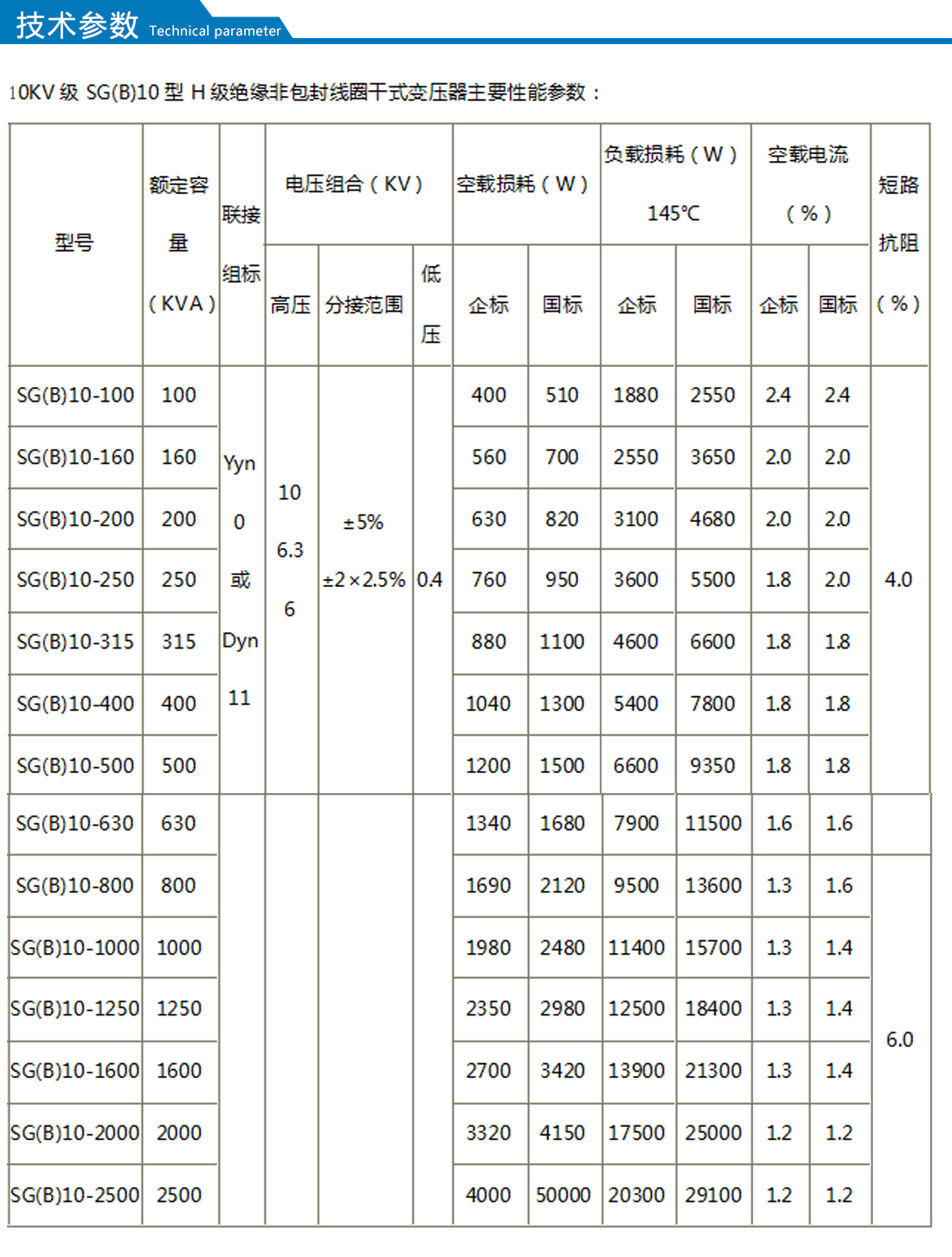 SG(B)10系列H級絕緣干式變壓器采用優質環保材料,先進的生產檢測設備按嚴格的工藝生產而成,具有高性能、高安全、承受熱沖擊能力強等特點,它適用于防火要求高、負荷波動大以及污穢潮濕的惡劣環境中。如:高層建筑、商業中心、住宅小區、醫院、化工廠、核電站、船舶及其它安全性要求防火、防爆、防潮的配電網絡與工礦企業供配電系統等重要或特殊環境場所。