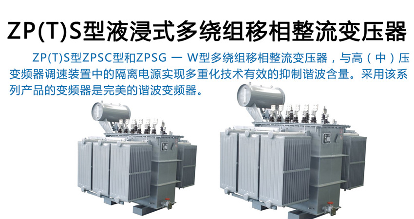 ZP(T)S型ZPSC型和ZPSG—W型多繞組移相整流變壓器,與高(中)變頻器調速裝置中的隔離電源實現多重化技術有效的抑制諧波含量。