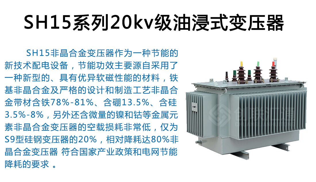 SH15非晶合金變壓器作為一種新一代節能產品,可以普遍適用于住宅小區、學校、工礦企事業單位以及社會公共設施??稍趹魞龋ㄍ猓┦褂?,容量在315kVA 及以下時可安裝在桿上,海拔高度不超過1000m。