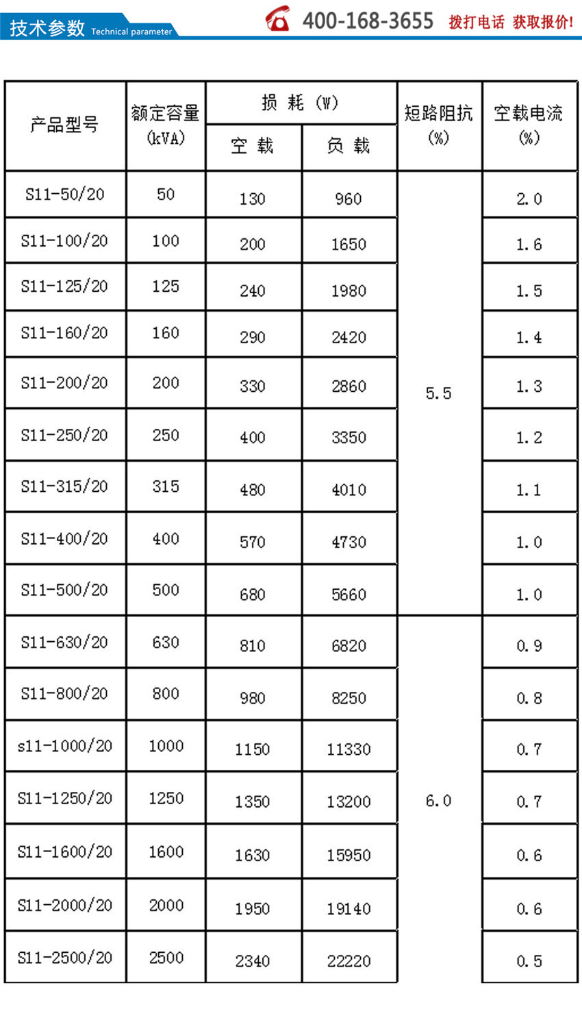 S11系列產品在S9系列的基礎上,空載損耗平均降低了30%;空載電流比S9下降70-85%;平均溫升降低10K,產品使用壽命增加一倍多,即使在超負載20%的條件下仍可長期運行;產品運行噪音平均降低2-4分貝。